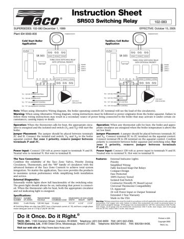 Taco Sr503 Manual. See the sr503 instructions for important details and safety warnings. Ll circulator relay connections, including zc/zr, are rated.